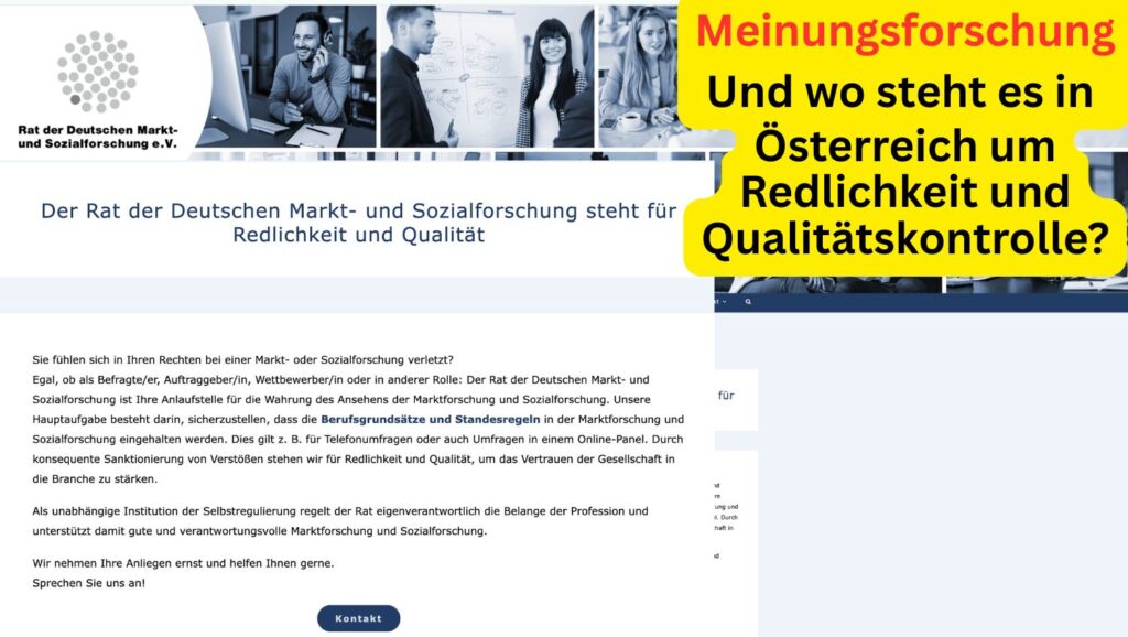 Während Deutschland seit über zwanzig Jahren über eine unabhängige, verbandsübergreifende Beschwerdestelle verfügt – den Rat der Deutschen Markt- und Sozialforschung –, existiert in Österreich keine vergleichbare Institution. In Deutschland kann sich jede Person, die sich durch eine Markt- oder Sozialforschung verletzt fühlt, an diese Stelle wenden: Befragte, Auftraggeber, Wettbewerber oder jede andere betroffene Rolle. Der Rat prüft Beschwerden, sanktioniert Verstöße und schützt damit die Glaubwürdigkeit der gesamten Branche. Er ist ausdrücklich dafür zuständig, sicherzustellen, dass Berufsgrundsätze eingehalten werden, und er fungiert als unabhängige Selbstkontrolle der Profession. Getragen wird er von ADM, ASI, BVM und der Deutschen Gesellschaft für Online-Forschung (DGOF).