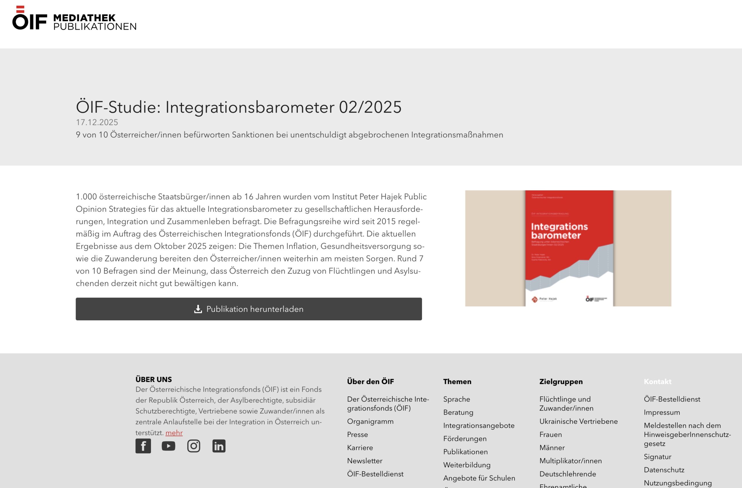 5-Integrationsbarometer 2025: TKGs kritische, grundrechtsbezogene Gesamtbewertung der Antworten des ÖIF und von Peter Hajek, dem Meinungsforscher, der das Integrationsbarometer 2025